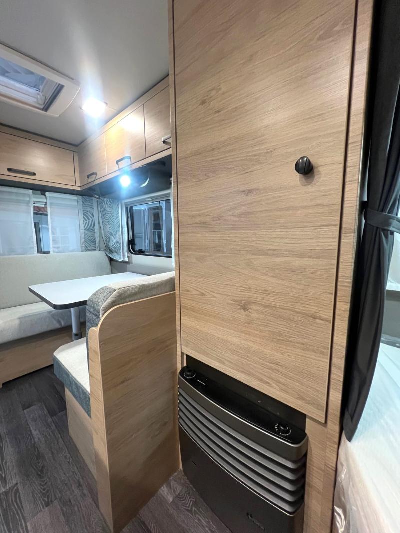 Öppningsbart fönster fram, Öppningsbara tonade dubbelglasfönster (Fönster i köket med myggnät och mörkläggning), Kylskåp 98 liter, GFK-Tak som är mindre känsligt för hagelskador, Täthetsgaranti 10 år, Elektrisk golvvärme, Gasvärme: TRUMA S 3004,, TRUMA Ultraheat 220 V centralvärme, Smart-Paket (Kombi-Rollos på fönstren inklusive mörkläggning och insektsskydd Säkerhetskoppling Färskvattentank 45 liter fast inbyggd Varmluftsfördelning 12 V) Sport paket (Insektsdörr Aluminiumfälgar för enkelaxel LED-lister bakom alla överskåpsluckor runt om i garderoben på frontpanelen 2x nattlampa med strömbrytare)