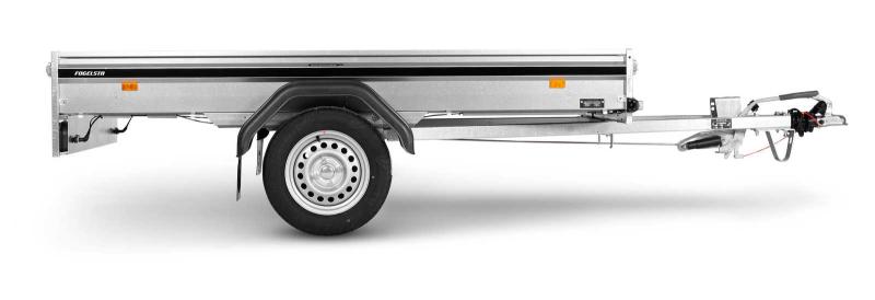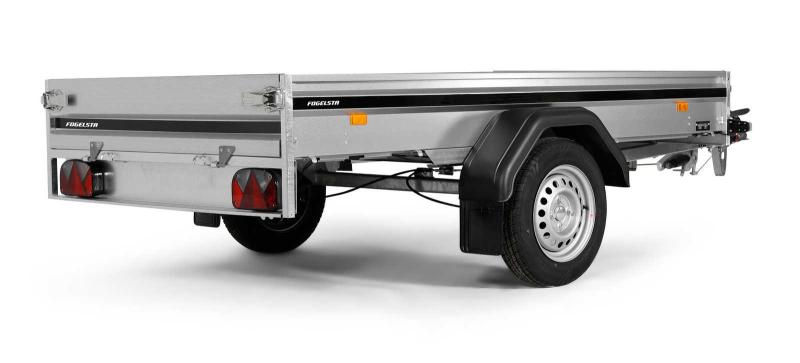 FS1425B750 SVERIGES MEST SÅLDA BROMSADE SLÄPVAGN. En tippbar fritidsvagn som finns i både bromsat och obromsat utförande. FS1425 har underlättat vardagen för tiotusentals svenska villaägare. Släpvagnen har fällbar fram- och bakläm och är utrustad med tipp. Stabilt, slutet V-drag för ökad trygghet. Släpvagnens elsystem är skyddat i chassit för ökad säkerhet. Utrustad med invändiga bindöglor. Köp till nätgrindar 80cm för 5190:- Fogelsta, FS1425, FS 1425, Bilsläp, Släpkärra, Tiki, WT-trailer. Finansieringsförslag: 833:-/mån 24mån räntefritt, avgift tillkommer.